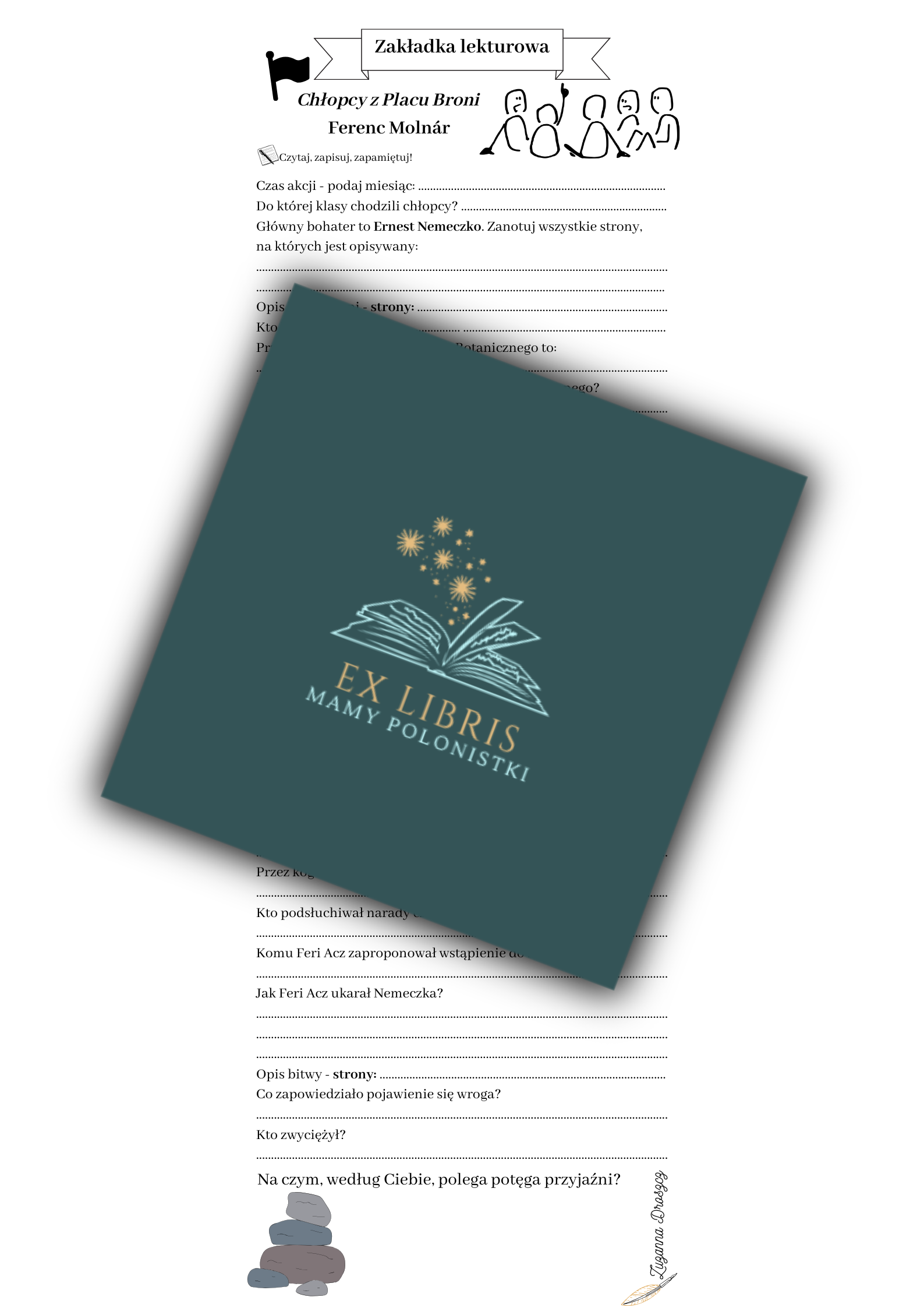 Zawarte na niej pytania pomagają uczniom uporządkować czytane treści i skupić się na najważniejszych fragmentach i wydarzeniach. Są to zarówno pytania otwarte, wymagające krótkiej odpowiedzi, jak i polecenia dotyczące zapisywania konkretnych stron, na których znajduje się znaczący fragment. Ułożone są w porządku odpowiadającym treści lektury – nie trzeba wertować książki i wracać pamięcią do konkretnych wydarzeń czy bohaterów. Forma zakładki jest wygodna i atrakcyjna – włożona do książki towarzyszy uczniowi podczas lektury.  Jej fenomen nie kończy się jednak w domu. Zakładka lekturowa ułatwia pracę na lekcjach języka polskiego – uczniowie nie tracą już czasu na wyszukiwanie informacji, które są potrzebne do zrealizowania zadania (np.: charakterystyki bohatera, opisu miejsca itp.). Ponadto, zbierając wypełnione zakładki, nauczyciel otrzymuje informację zwrotną – czy uczniowie przeczytali lekturę i w jakim stopniu ją zrozumieli i przyswoili jej treść.