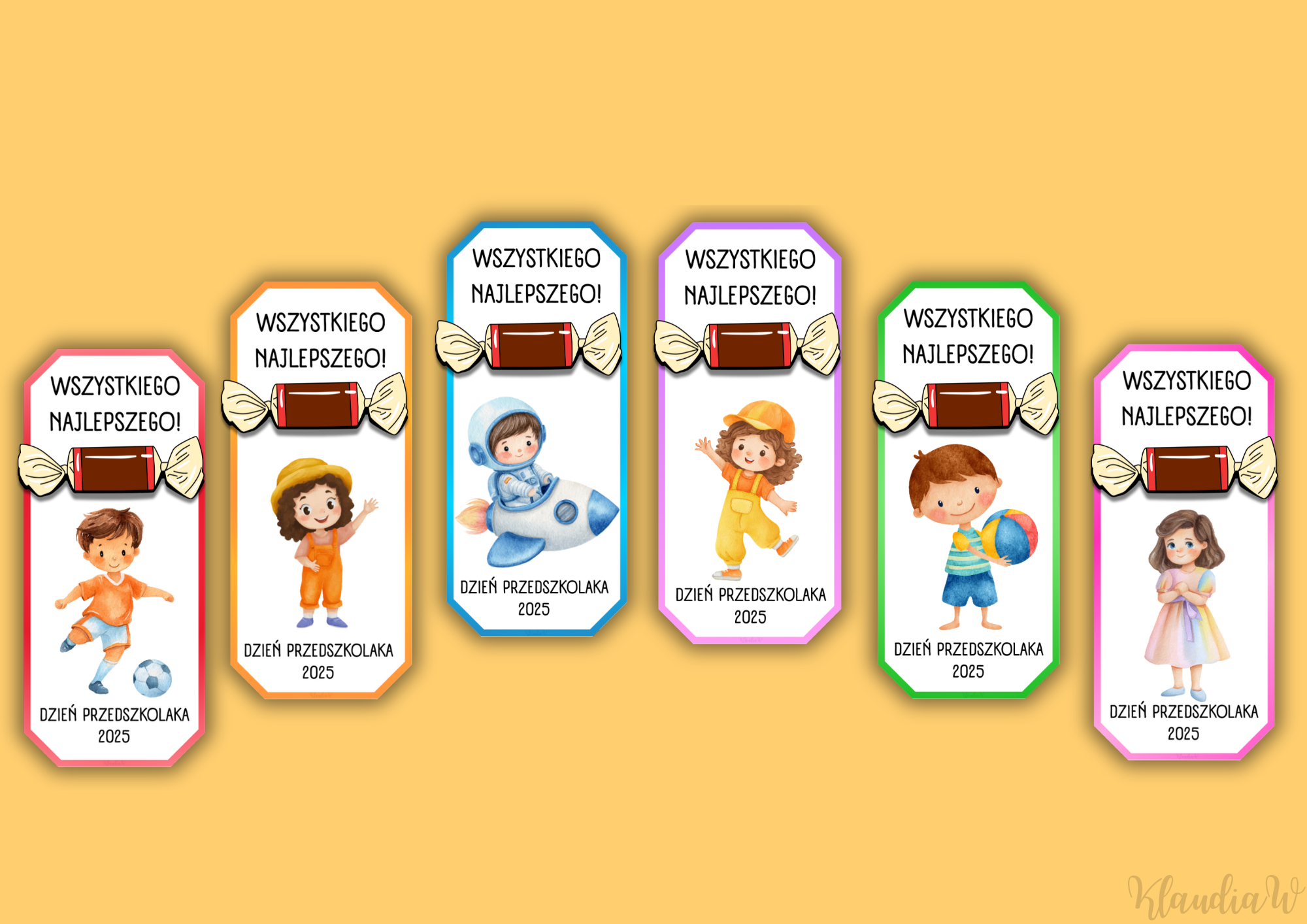 Zestaw zakładek z miejscem na cukierka – idealny na Dzień Przedszkolaka.