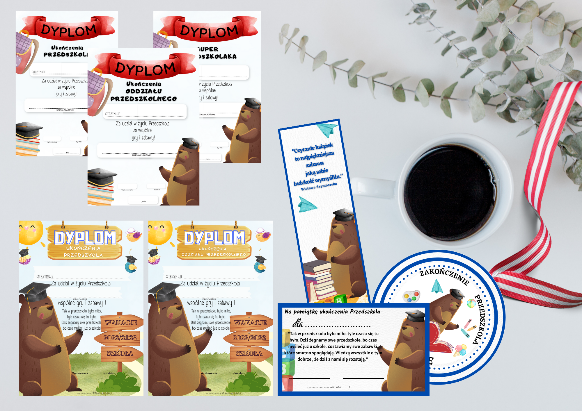 -różne wersje dyplomu zakończenie: przedszkola, zakończenia oddziału przedszkolnego, żłobka.