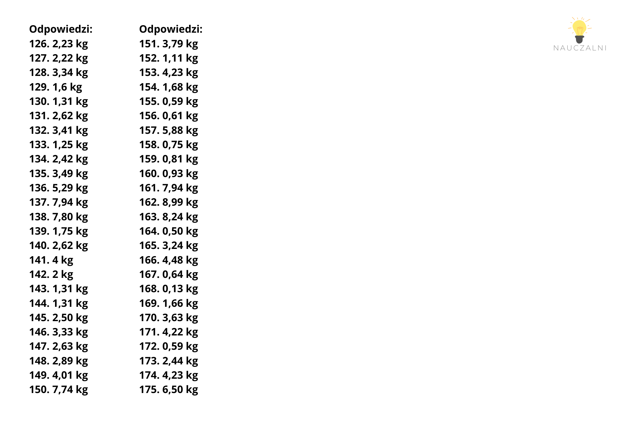 Na ostatniej stronie znajdują się odpowiedzi do list zakupów.