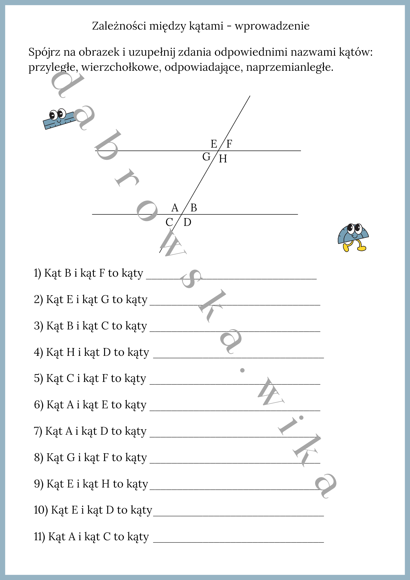Taka karta pracy doskonale wprowadzi uczniów w temat zależności między kątami oraz je odróżniać.