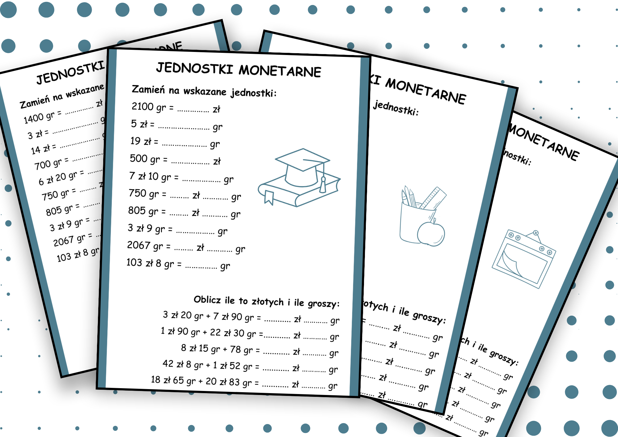 Karta edukacyjna "Zamiana Jednostek Monetarnych" została stworzona specjalnie dla uczniów klas 4 i 5, aby rozwijać ich umiejętności w zamianie jednostek. Karta pracy skupia się na praktycznych ćwiczeniach związanych z przeliczaniem i zamianą złotych i groszy.