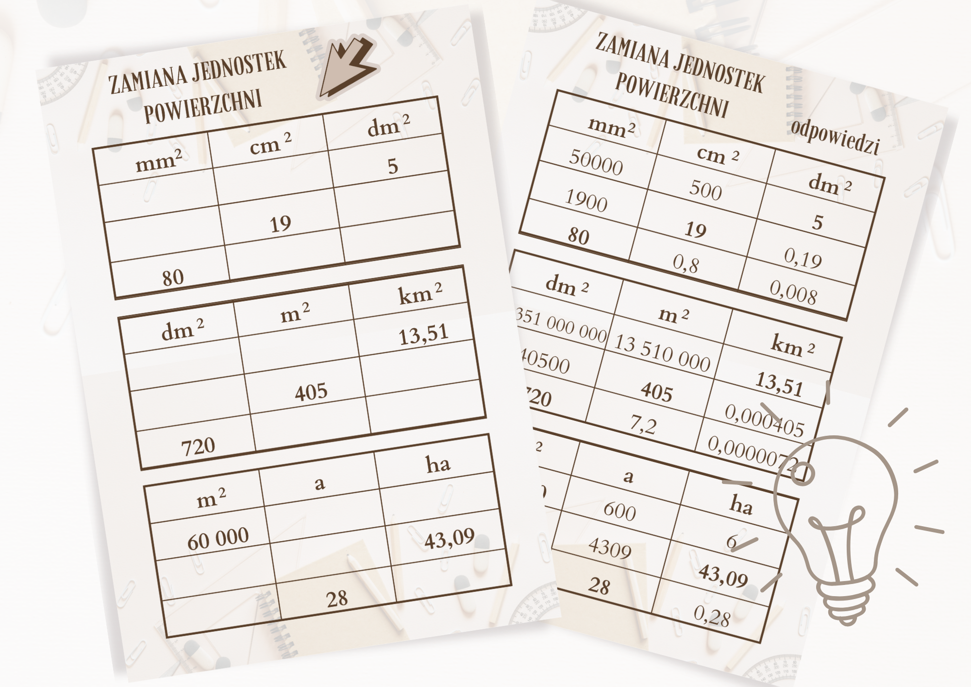 Zamiana jednostek powierzchni dla klas 6,7,8.