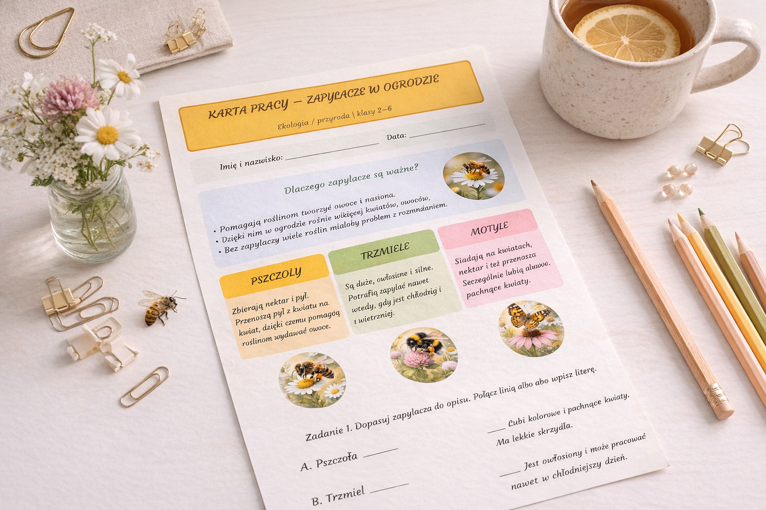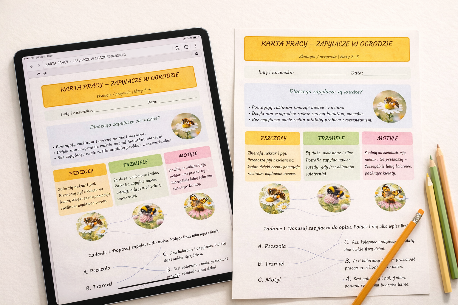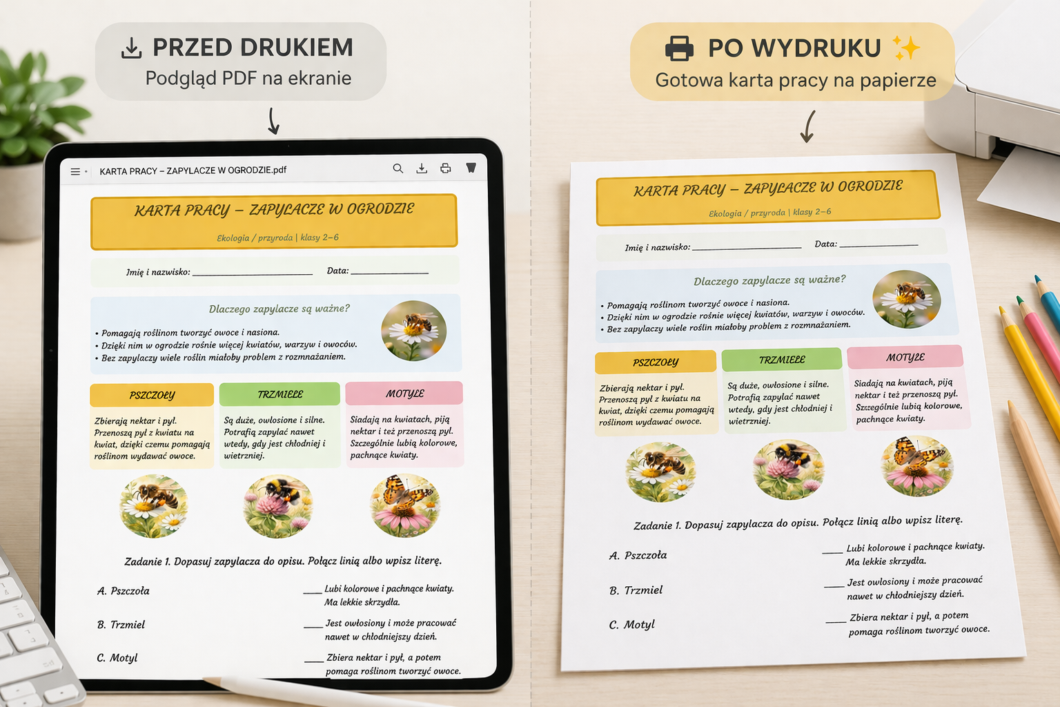 #kartapracy #zapylacze #pszczoly #trzmiele #motyle #ekologia #przyroda #edukacjaprzyrodnicza #nauczyciel #klasy2do6 #materialydodruku #pdfdladzieci #edukacjadzieci #ochronaprzyrody #sklepnauczyciela #pracadladzieci #homeschooling #materialyedukacyjne #naukaprzezzabawe #ogrod