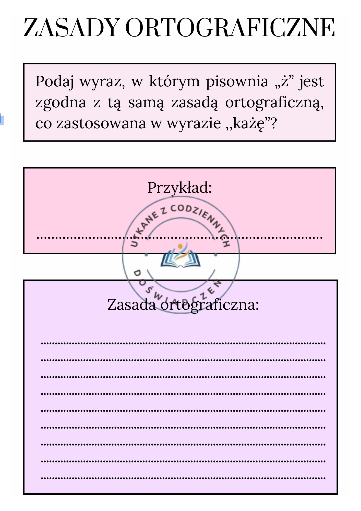 „Podaj wyraz, w którym pisownia ‘ż’ jest zgodna z tą samą zasadą ortograficzną, co zastosowana w wyrazie ‘ważyć’.” „Podaj wyraz, w którym pisownia ‘rz’ jest zgodna z tą samą zasadą ortograficzną, co w wyrazie ‘bramkarz’.”