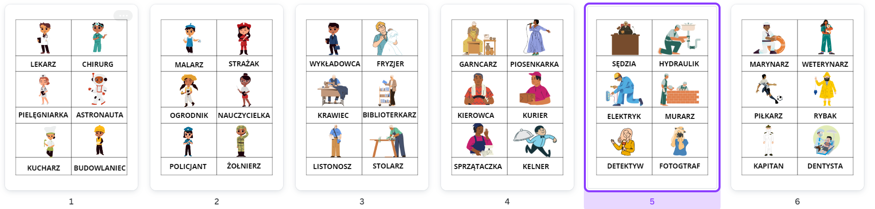 Zawody - karty obrazkowe 36 zawodów przedszkole, szkoła, klasy 7 i 8 można wykorzystać do podpisywania, czytania, kalambur