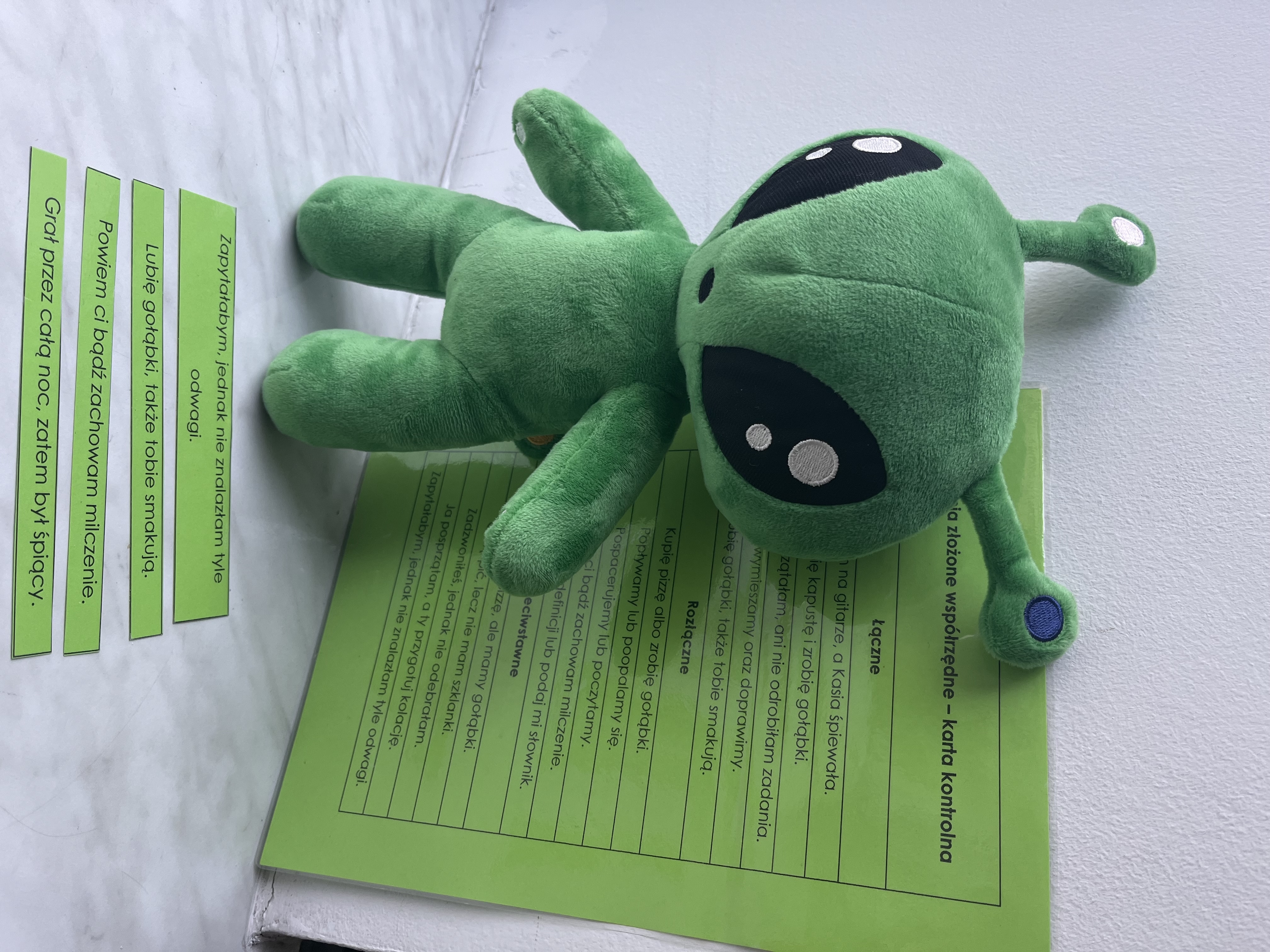 Przykłady zdań złożonych współrzędnie - tniemy zdania na paseczki, osobno mamy wypisany typ zdania. Zadaniem ucznia jest sklasyfikować każde zdanie do właściwego typu. Po wykonaniu zadania sprawdza jego poprawność na załączonej karcie kontrolnej.