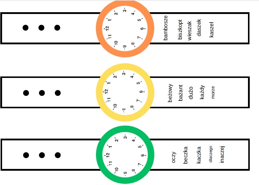 Zegarki do utrwalania prawidłowej wymowy - stwórz z dzieckiem "zabawkę" do utrwalania wymowy. Pozwoli ona kształtować nawyk prawidłowej wymowy.