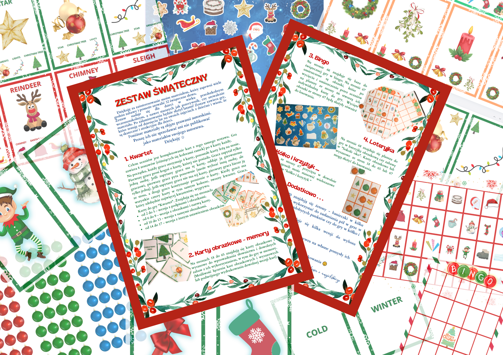 zaczęło się od tworzenia na własne potrzeby świątecznej wersji gry "Kwartet", ale tak się wkręciłam, że powstało ponad 70 stron i postanowiłam je doszlifować i spróbować się nimi podzielić