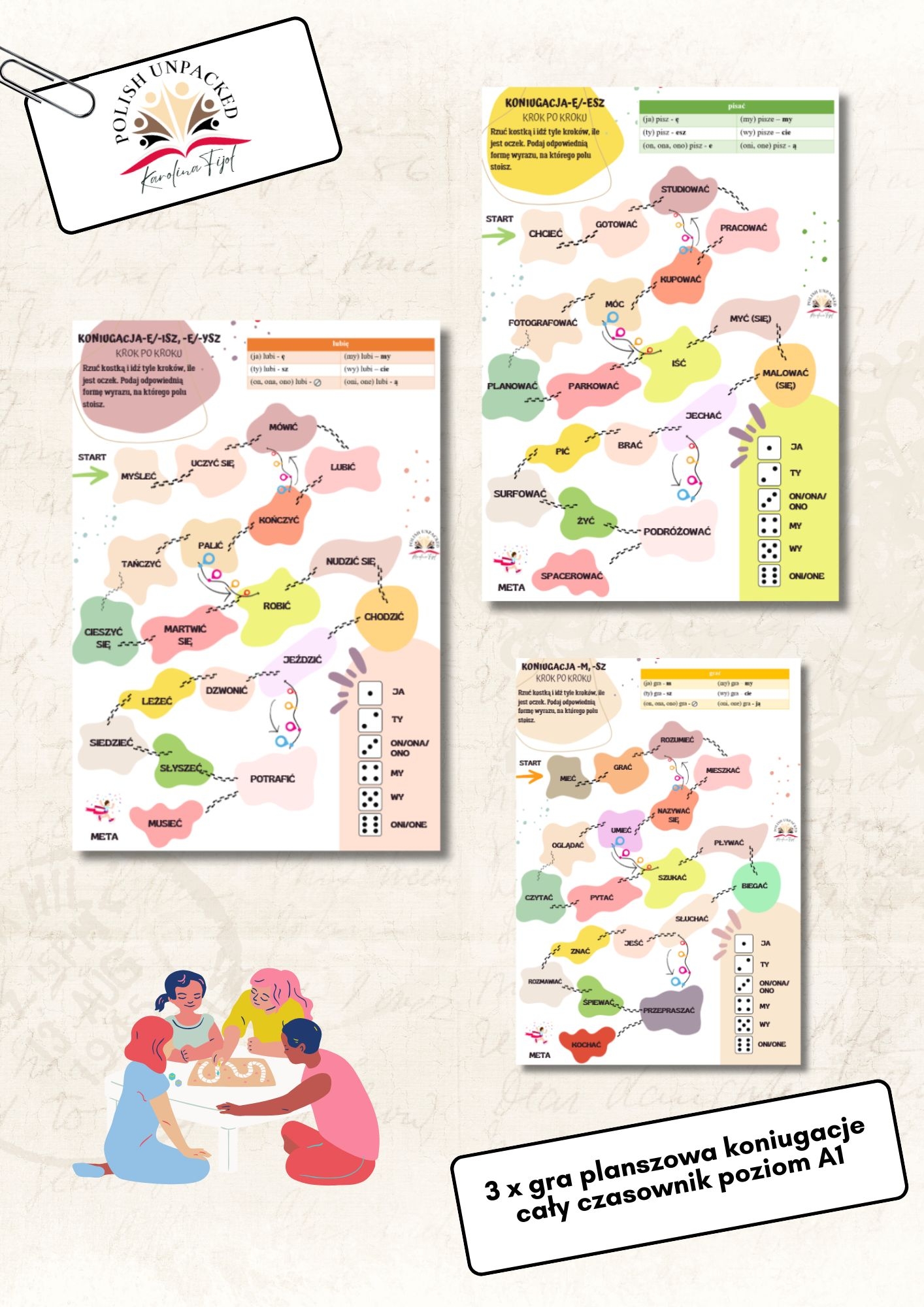 Nie wiesz, jak w ciekawy sposób przećwiczyć z Twoimi kursantami koniugacje czasownika na poziomie A1? Ten zestaw gier planszowych zrobi to za Ciebie!
