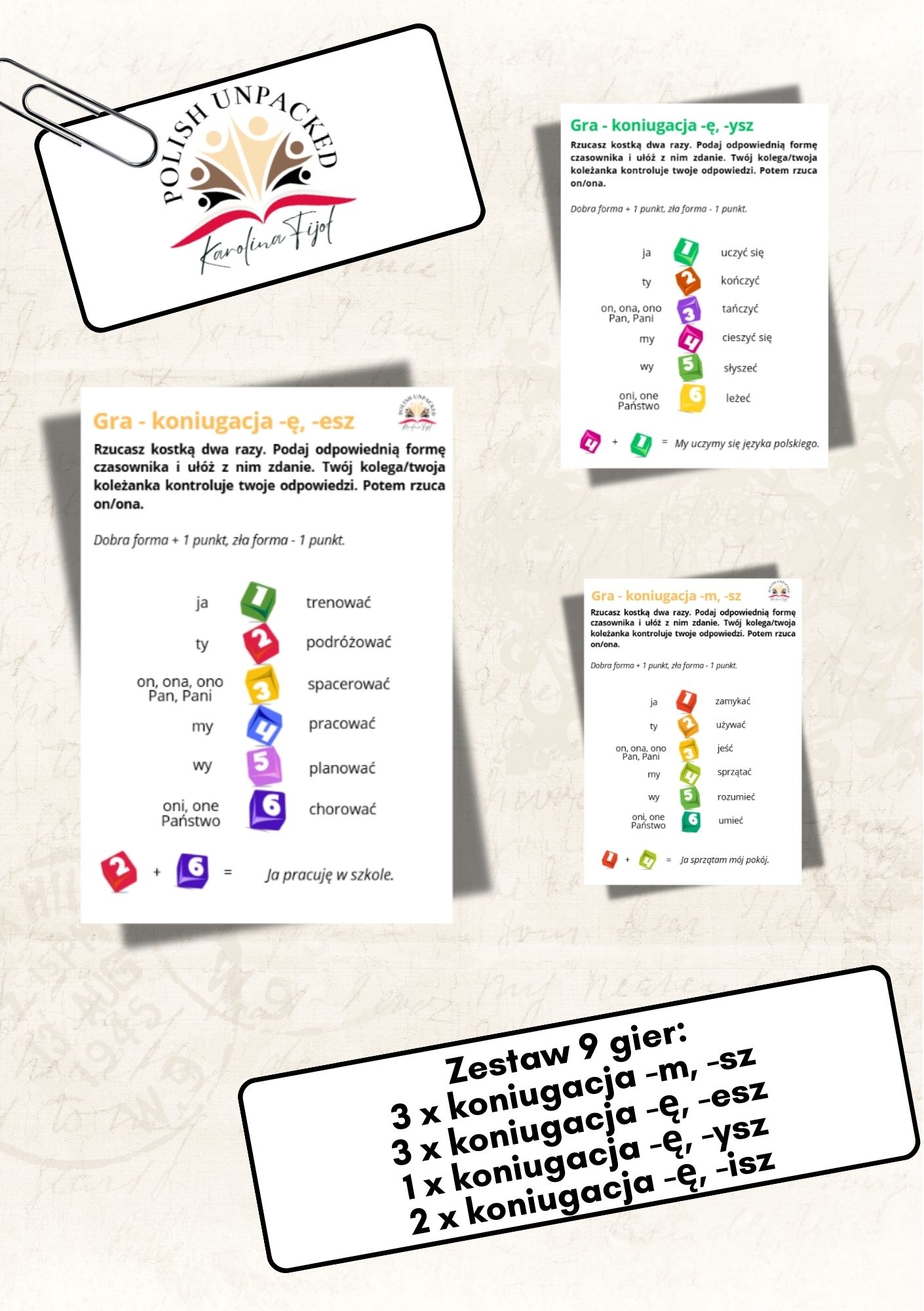 Nie wiesz, jak w ciekawy sposób przećwiczyć z Twoimi kursantami koniugacje czasownika na poziomie A1? Ten zestaw gier planszowych zrobi to za Ciebie!