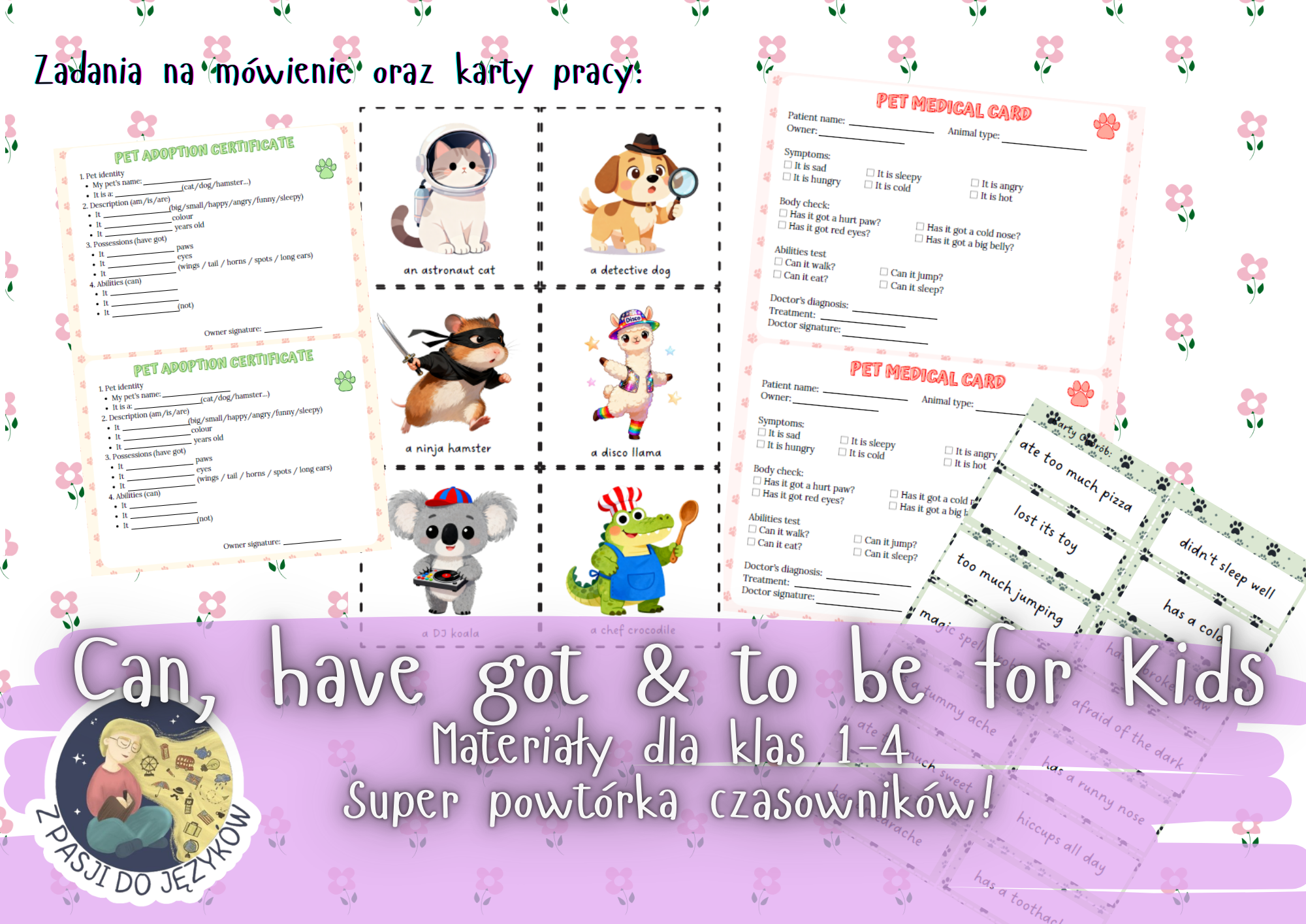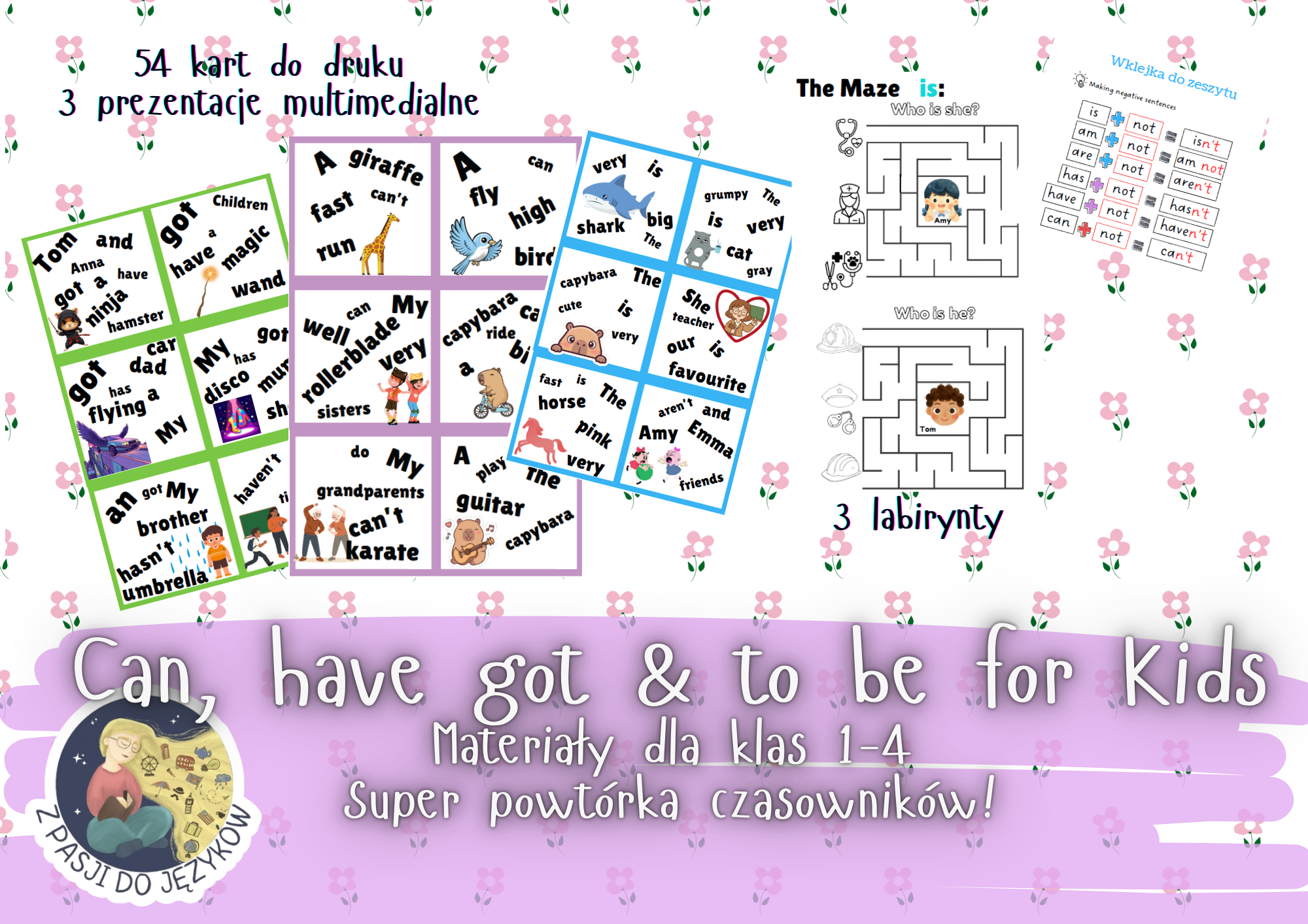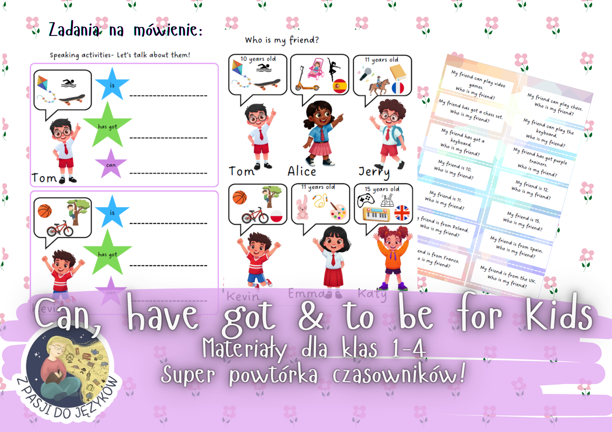 Powstał z potrzeby przypomnienia klasie 4 czasowników to be, have got i can.