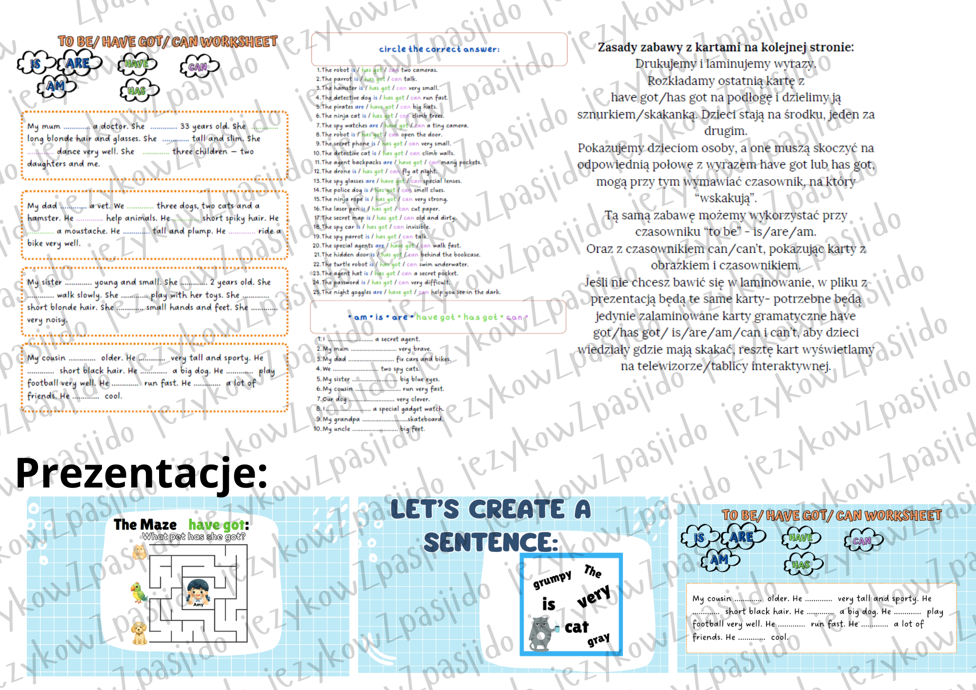 Obszerny materiał po którym wasi uczniowie będą wiedzieli co to było te to be, have got i can :)