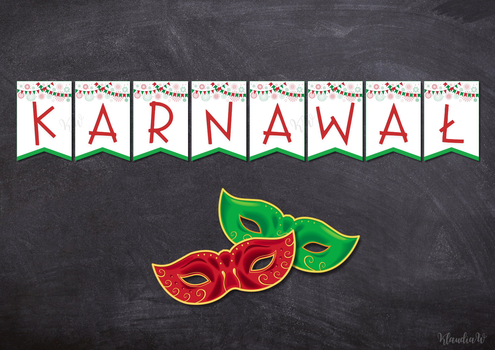 Kolorowy zestaw dekoracyjny, który w prosty sposób pomoże Ci stworzyć radosny, karnawałowy klimat w sali. W zestawie: - napis „BAL KARNAWAŁOWY” – każda litera na osobnej stronie A4, - 2 maski karnawałowe – do sklejenia z 3 kartek A4.
