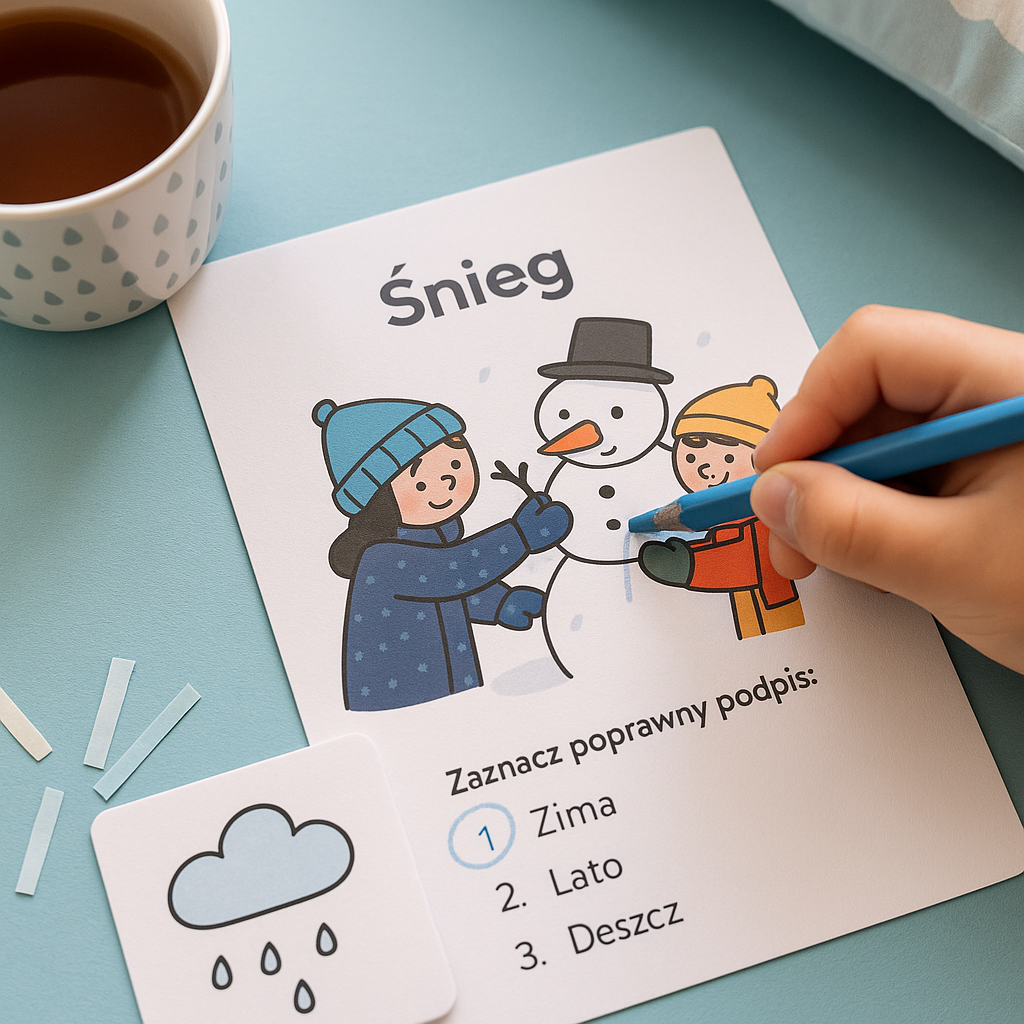 ✏️ Podpisy do obrazków – nauka czytania, pisania i rozumienia ze słuchu