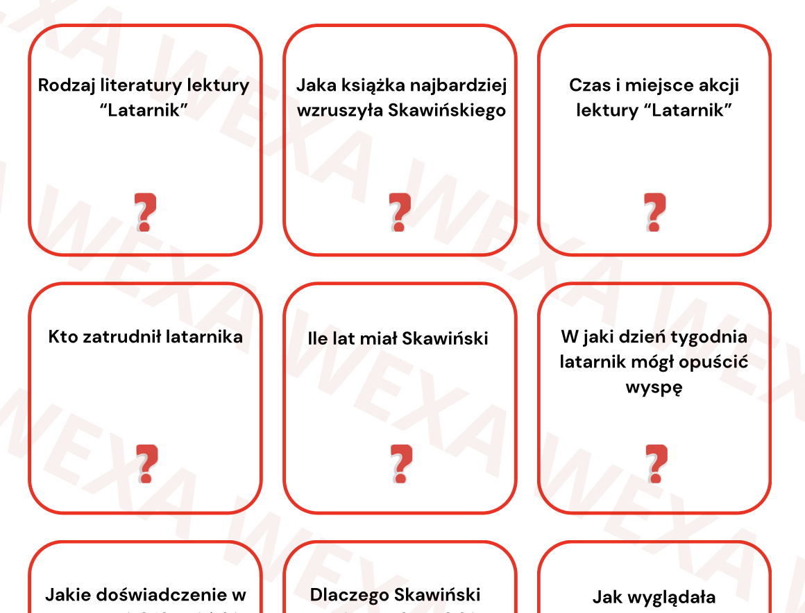 Zestaw zawiera dwie kartki pomocne w pracy z lekturą „Latarnik” Henryka Sienkiewicza.
