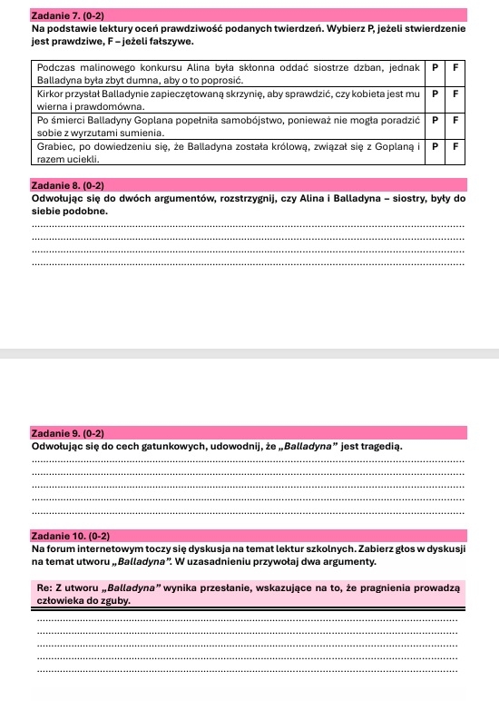 Zestaw lekturowy "Balladyna"