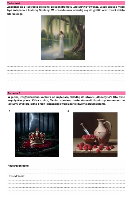 - zadania z ikonografią,