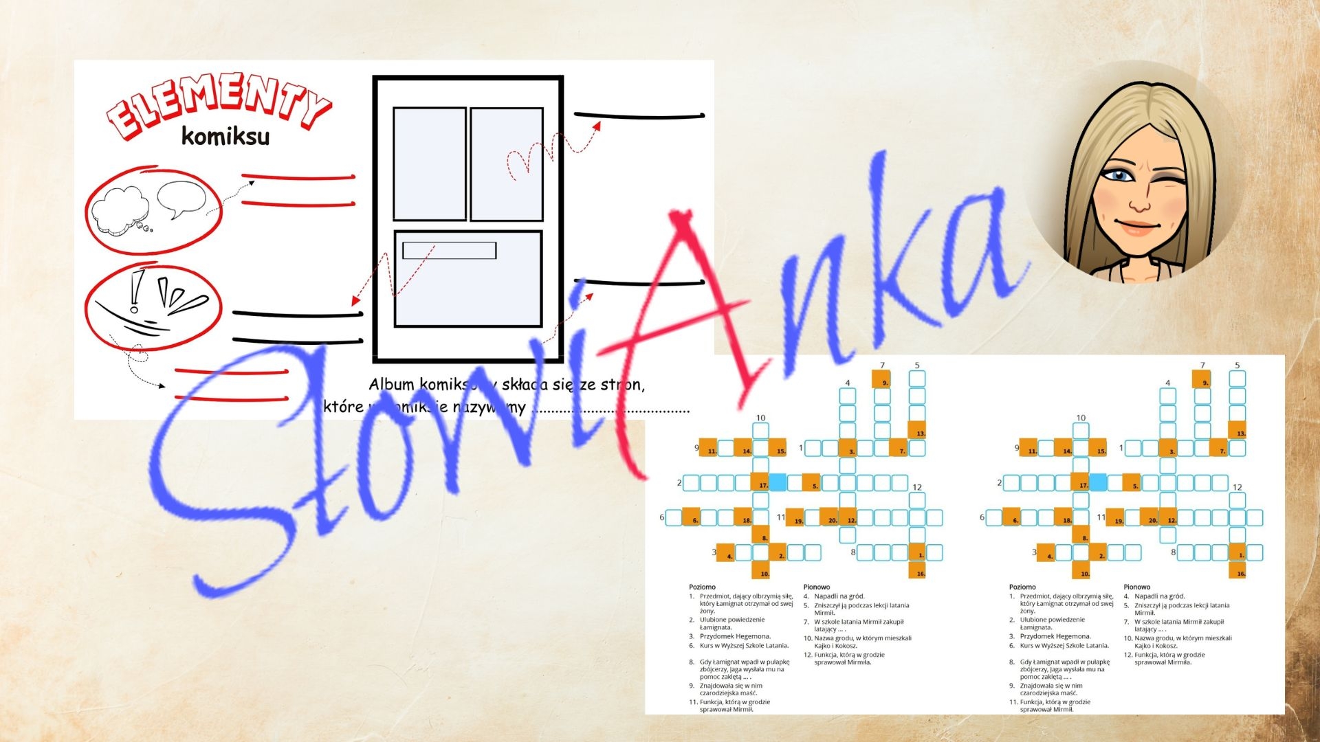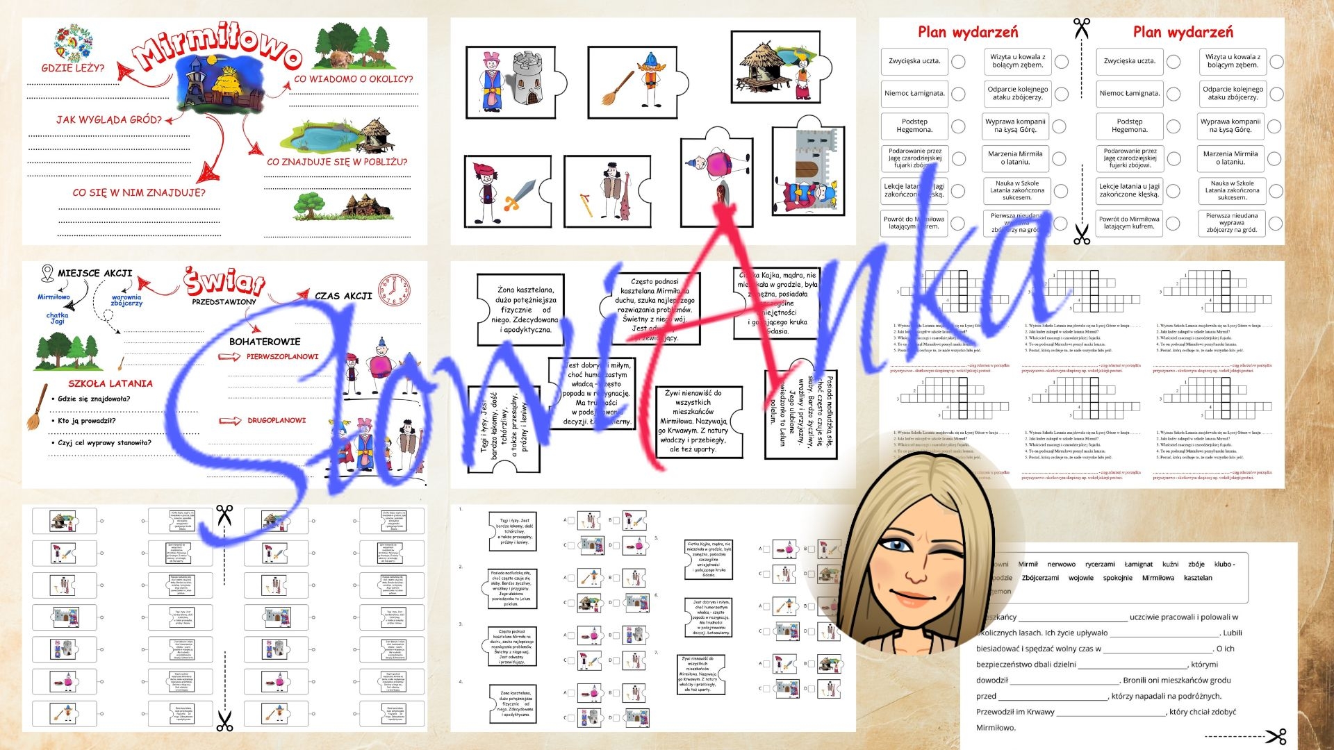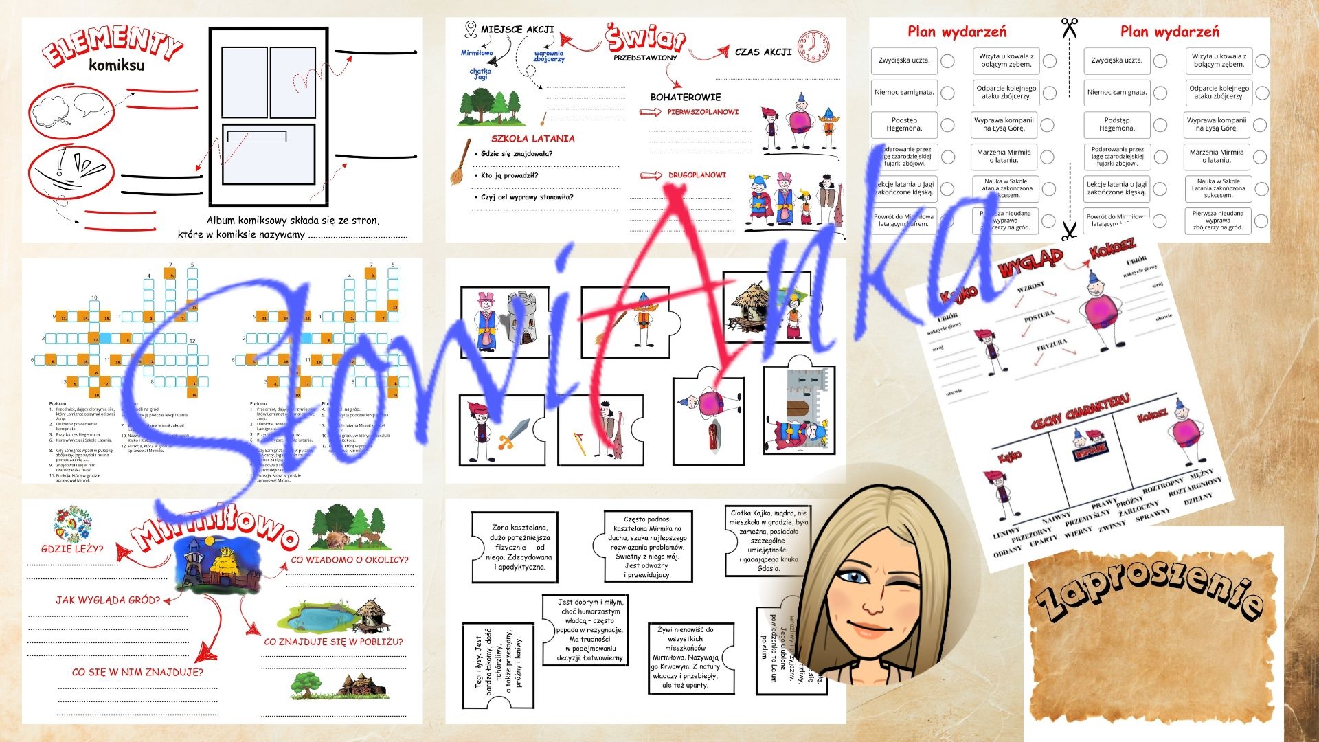 Oferuję zestaw materiałów dydaktycznych do omówienia lektury “Kajko i Kokosz. Szkoła latania” do samodzielnego wydruku. W skład zestawu wchodzą materiały do 4 lekcji: *PRZEPIS NA KOMIKS: - karta pracy ELEMENTY KOMIKSU (budowa planszy komiksowej); - krzyżówka. * JAK WYGLĄDAŁO ŻYCIE MIESZKAŃCÓW MIRMIŁOWA? – karta pracy dotycząca elementów świata przedstawionego komiksu (miejsce i czas zdarzeń, bohaterowie pierwszo- i drugoplanowi); - puzzle (na podstawie krótkich opisów trzeba dobrać odpowiedni puzzel z bohaterem) - ćwiczenie to jest w 3 wariantach (zwykłe puzzle do wycięcia, test, łączenie elementów); - plan wydarzeń - rozsypanka z do ponumerowania; - logogryf, którego hasłem jest WĄTEK; - notatka w formie wklejki z brakującymi słowami. * BYŁO ICH DWÓCH, A KAŻDY TO ZUCH! –karta pracy dotycząca wyglądu zewnętrznego i cech charakteru Kajka i Kokosza. * ODWIEDZAMY GRÓD DAWNYCH SŁOWIAN - MAKIETA MIRMIŁOWA. – kryteria sukcesu dla grup; - szablon zaproszenia. Materiały stworzone są, by korzystać z nich wraz z prezentacją: https://view.genial.ly/653eba383cc29a001156b2f4 Zachęcam do zakupu!