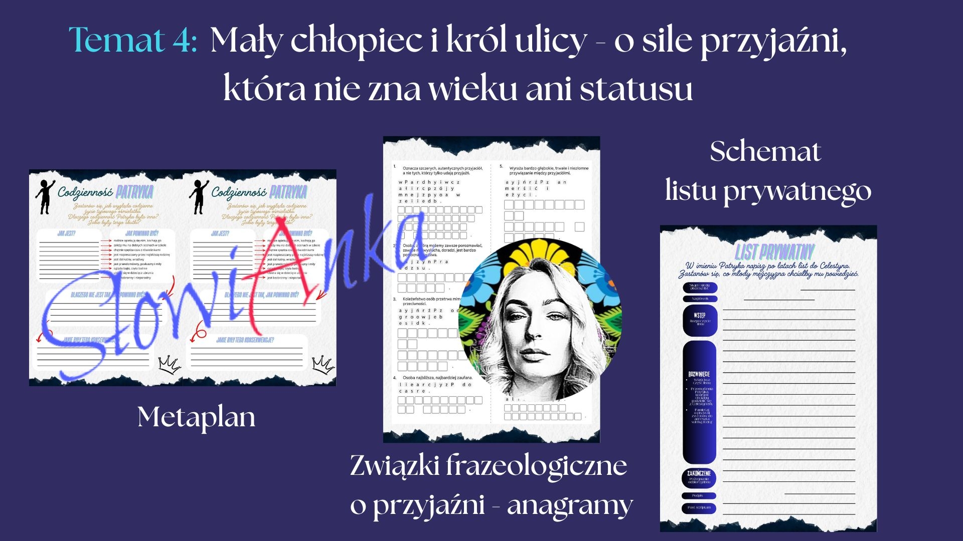 – schemat listu prywatnego W imieniu Patryka napisz po latach list do Celestyna. Zastanów się, co młody mężczyzna chciałby mu powiedzieć.