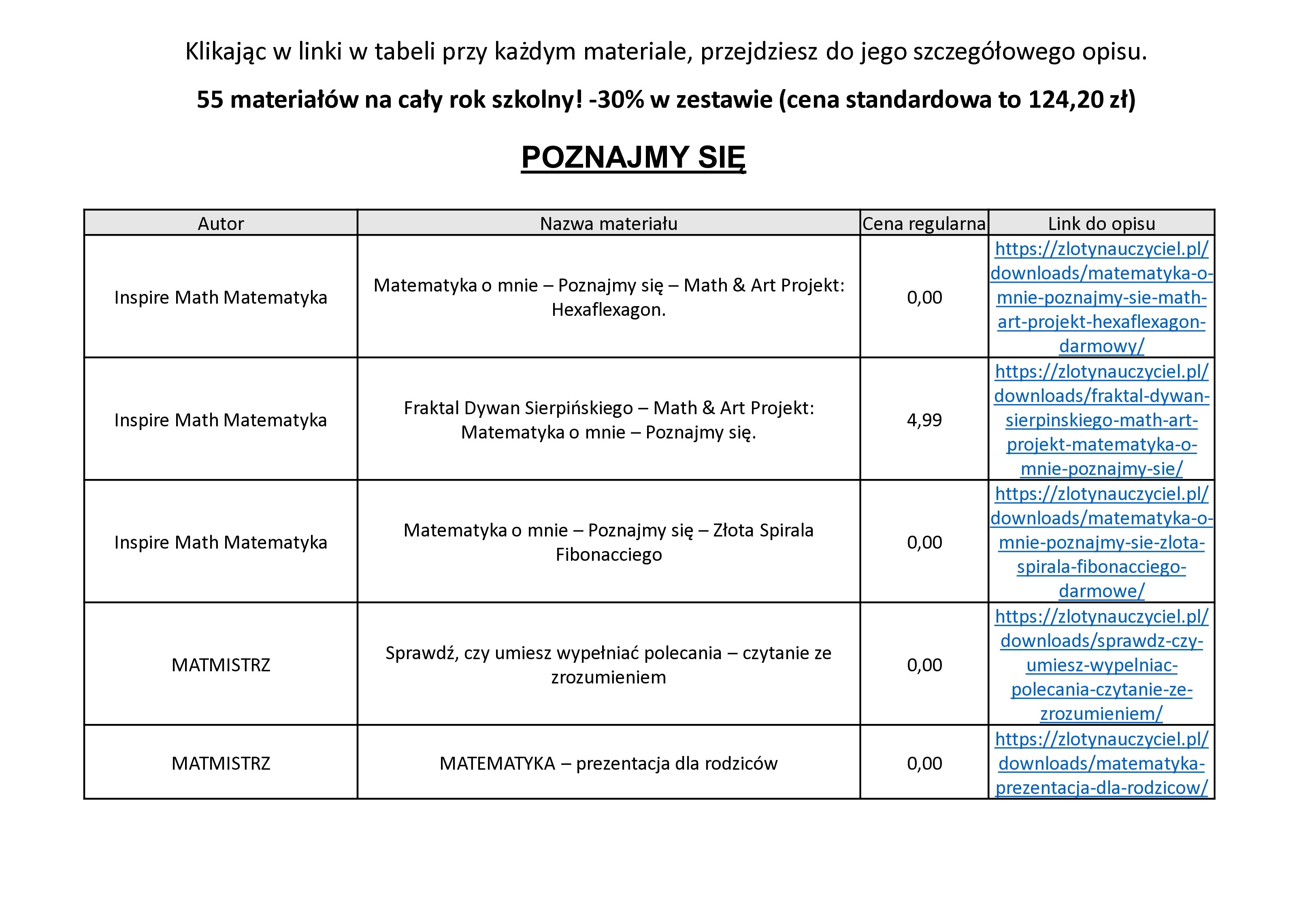 UWAGA! Materiały w naszych zestawach nie powtarzają się! Zestaw do każdej klasy zawiera zupełnie inne materiały. Dzięki temu możesz zakupić wszystkie zestawy: dla klasy 4, 5, 6, 7 oraz 8 i mieć jeszcze więcej materiałów, które możesz wykorzystać w różnych grupach wiekowych.