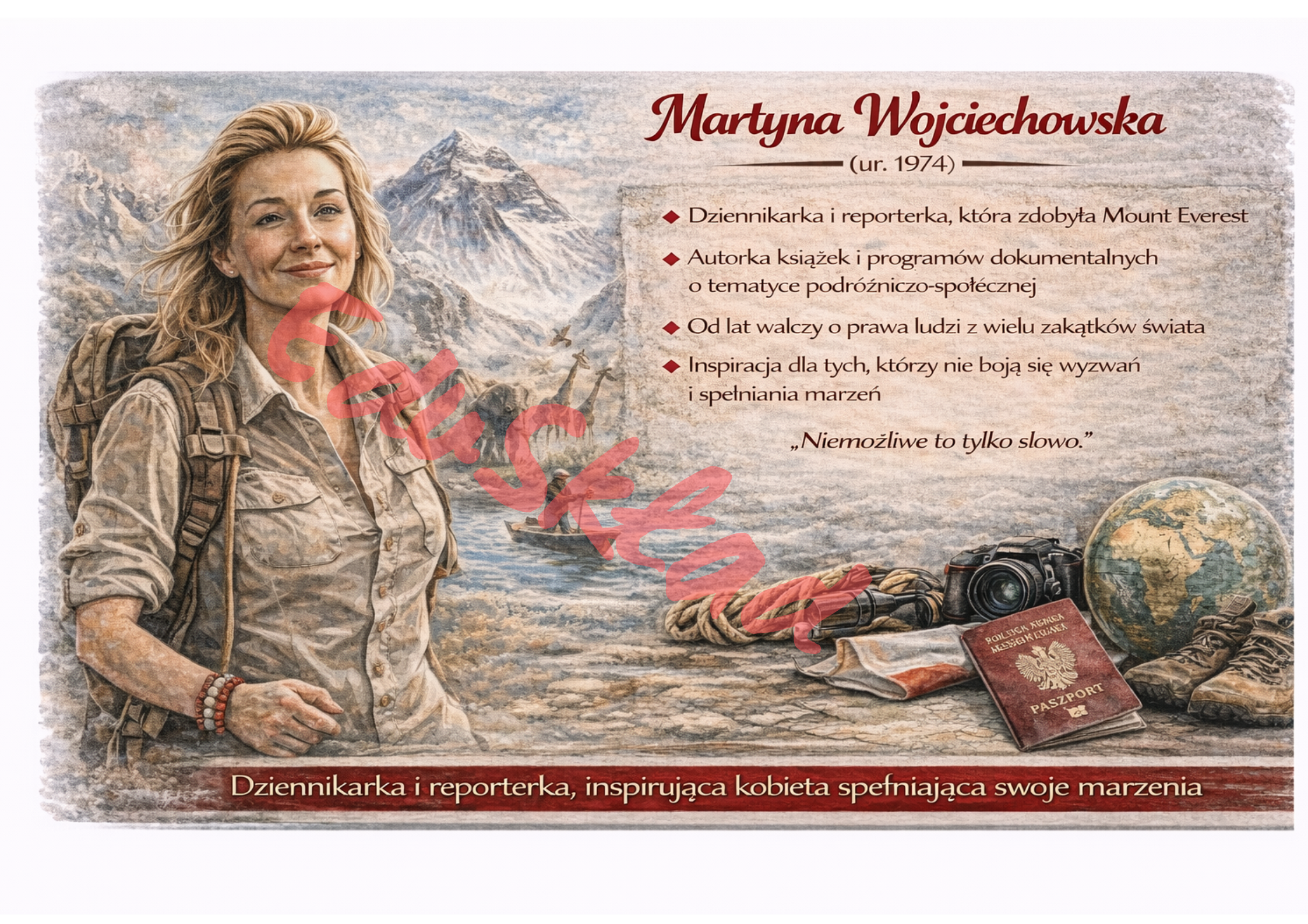 Zestaw plakatów edukacyjnych „Wybitne Polki” to autorska seria grafik przygotowana z okazji Dnia Kobiet – 8 marca, prezentujÄ…ca sylwetki kobiet, które zasĹ‚ynęły w historii Polski i na Ĺ›wiecie. Ilustracje zostaĹ‚y wygenerowane przy wykorzystaniu narzÄ™dzia ChatGPT (AI), a nastÄ™pnie poddane analizie i korekcie jÄ™zykowej.