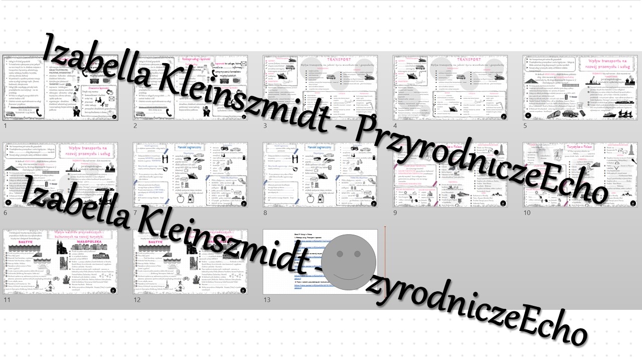Witajcie Nazywam się Izabella Kleinszmidt (PrzyrodniczeEcho). Jestem nauczycielem przyrody, biologii, geografii i chemii w szkole podstawowej w Pomysku Wielkim. Uwielbiam mój zawód i cieszę się, że robię w życiu to co kocham. Pasja dla nauczyciela jest bardzo ważna:). Prowadzę stronę PrzyrodniczeEcho na FB, nagrywam filmiki do lekcji, konstruuję prezentacje i lekcje multimedialne, escape roomy oraz sketchnotki i karty pracy w programie power point. Zapraszam na stronę internetową mojej szkoły, gdzie znajdują się (niektóre darmowe) opracowania lekcji do przyrody, biologii, geografii i chemii w SP. Adres strony internetowej: https://sppomyskwielki.edu.pl - zakładka - dla ucznia. Od niedawna zapraszam również na moją stronę internetową: https://ikleinszmidt.wixsite.com/przyrodniczeecho Zapraszam do korzystania z mojej pracy:) Bardzo proszę również czytać opisy, aby wiedzieć, jaki materiał znajduje się w danym pliku. Zachęcam do kontaktu w razie jakichś pytań lub błędów w pomocach - brakach lub literówkach-wszystko można naprawić? Jakich materiałów możecie Państwo oczekiwać? SKETCHNOTKA - notatka kompletna z określonego tematu KARTA PRACY - zazwyczaj sketchnotka z wykropkowanymi miejscami PREZENTACJA MULTIMEDIALNA - kompletne wiadomości do odpowiedniego tematu wraz z grafiką i tekstem - zarówno w power point jak i genially - tę koniecznie należy zapisać na swoim koncie! LEKCJA MULTIMEDIALNA - pomysł na przeprowadzenie lekcji - taki "tok lekcji" - skrócony scenariusz ZESTAWY - proszę się wczytać w opis, informuję co mieści się w konkretnym zestawie:) Pozdrawiam cieplutko:)