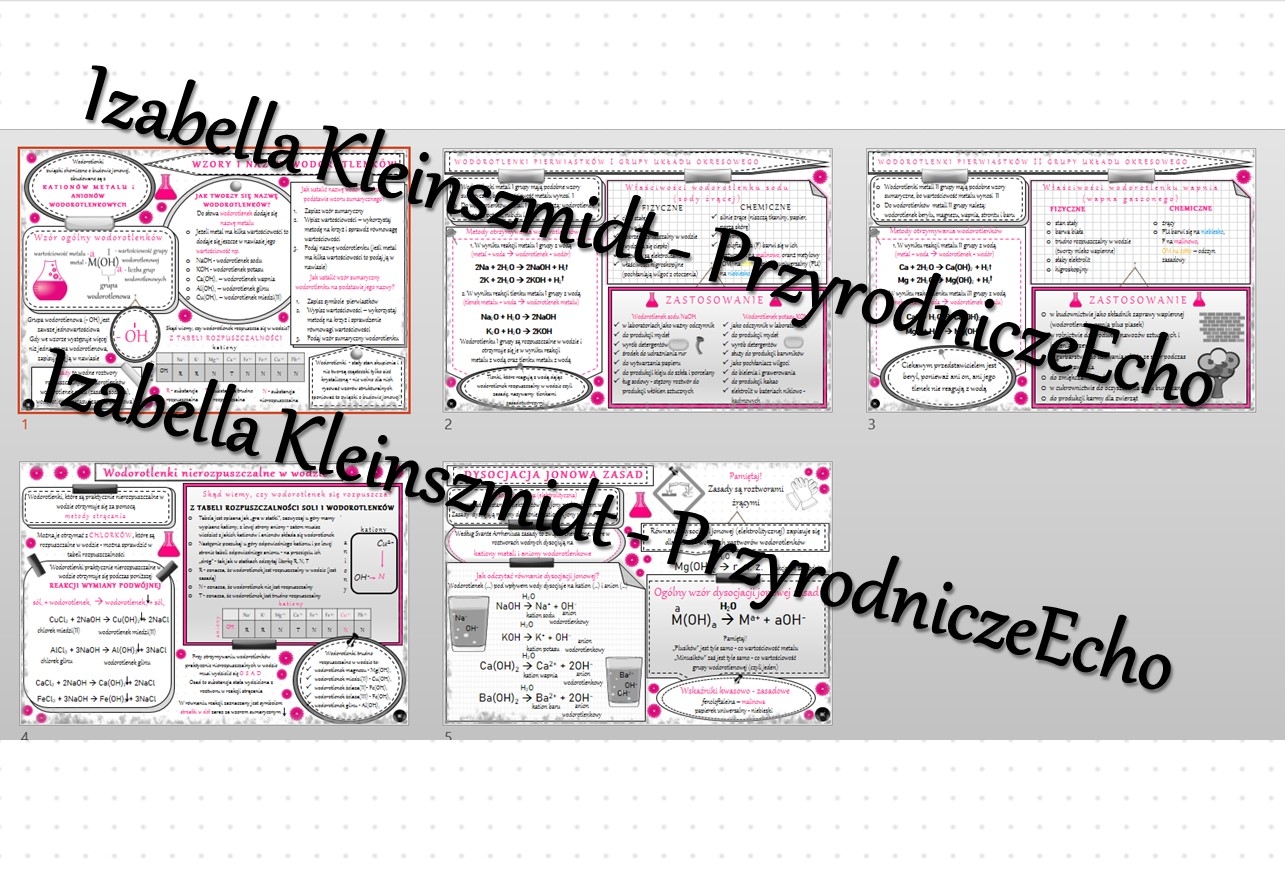 Zestaw sketchnotek – notatek do całego działu „Wodorotlenki” - wykonanych w power point do edycji. Chemia 7 lub 8
