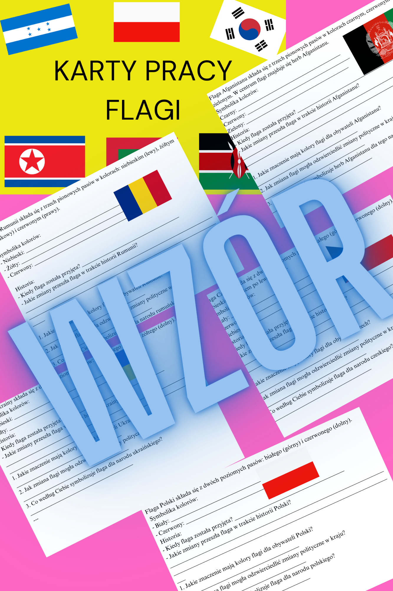 Z radością prezentuje ofertę zestawu 97 kart pracy poświęconych flagom państw. Ten obszerny zbiór jest zaprojektowany z myślą o rozwijaniu wiedzy uczniów na temat geograficznych i kulturowych aspektów różnych krajów. Karty pracy można wykorzystywać w różnych formach zajęć – od lekcji w klasie po projekty multimedialne.