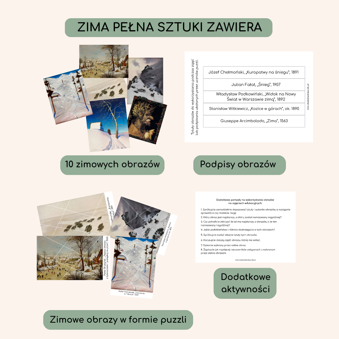 ZIMA NA OBRAZACH WIELKICH ARTYSTÓW – PUZZLE + PROPOZYCJE ZABAW