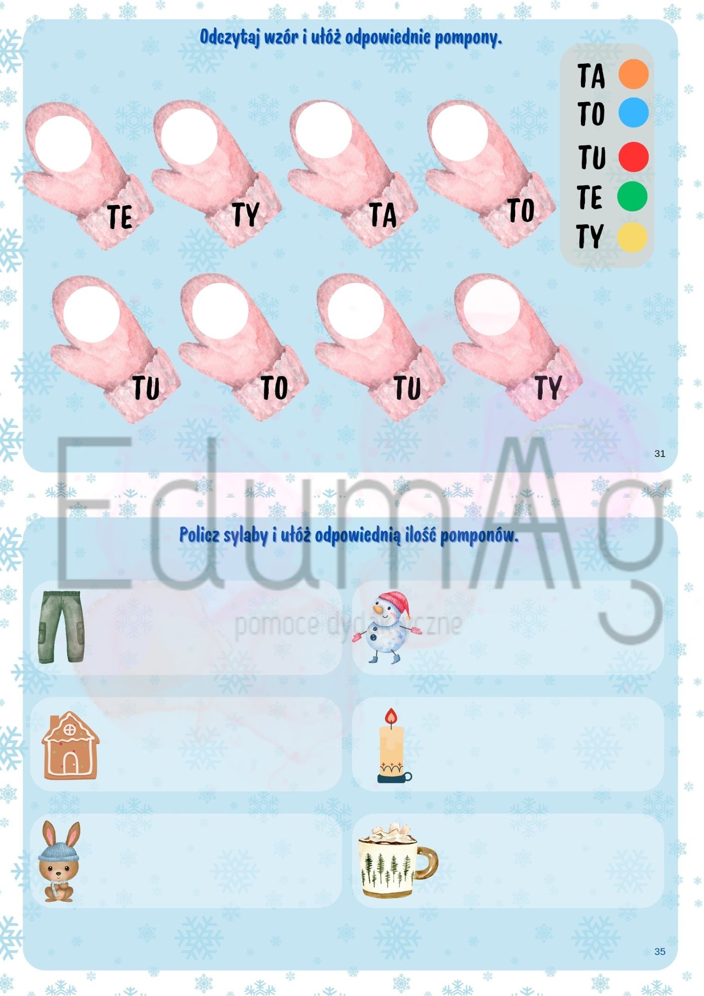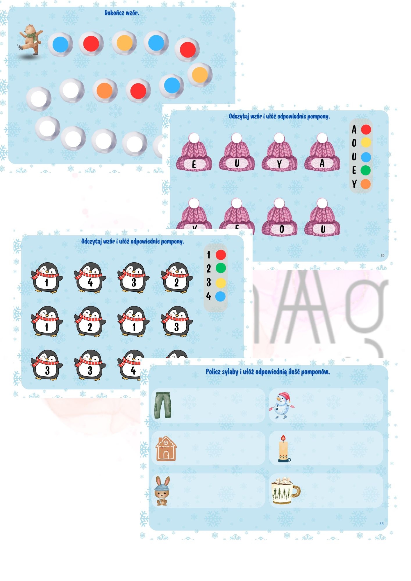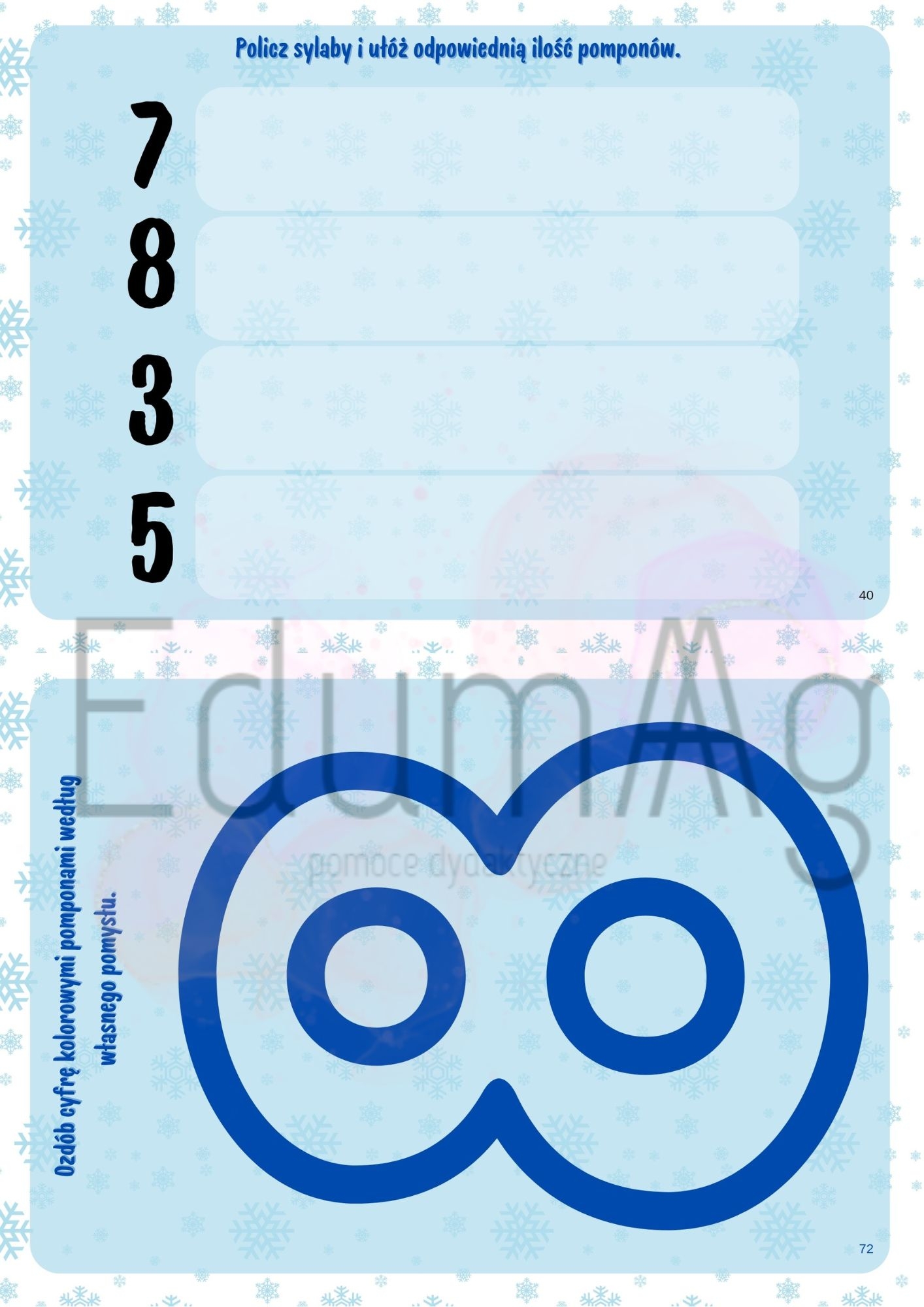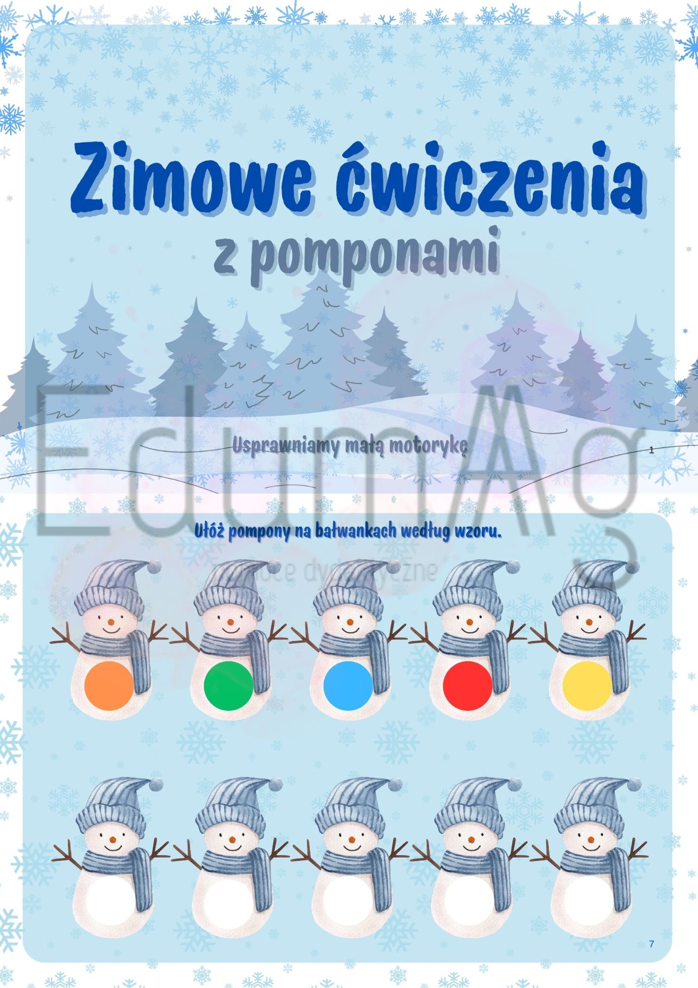 Zimowe zadania z pomponami – Książeczka PDF dla dzieci 3–7 lat