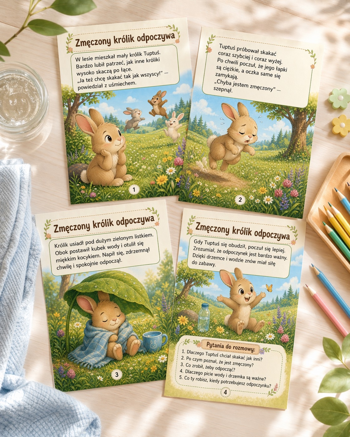 #zmęczonykrólikodpoczywa #historyjkadladzieci #bajkaterapeutyczna #odpoczynek #emocjedziecka #edukacjaprzedszkolna #edukacjawczesnoszkolna #materiałydladzieci #materiałydlanauczycieli #przedszkole #klasy13 #TUS #rewalidacja #bajkawyciąszająca #dbanieosiebie #emocje #nauczycielka #pomocedydaktyczne #królik #dzieciucząsięprzezopowieści