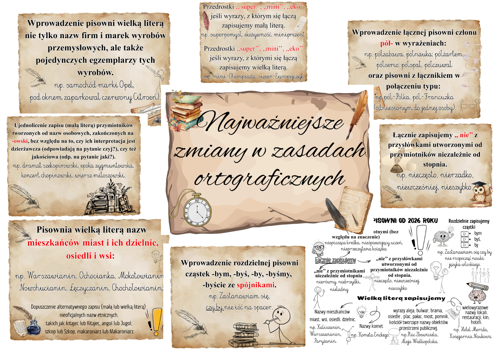 Gazetka+ wklejka z najważniejszymi zmianami w pisowni od 2026 roku.