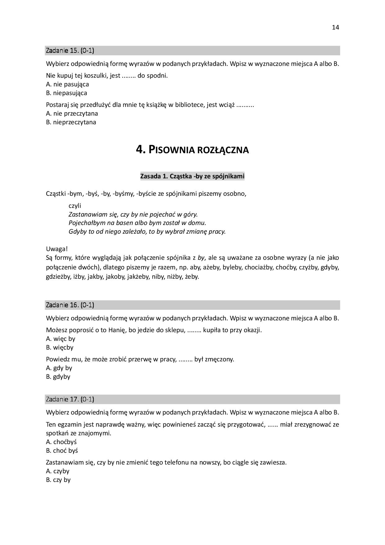 Część 2. zawiera większość zmian. Zostały one podzielone na działy (wielka litera itp.) i przełożone na język bliższy uczniom. Dodane są również zadania utrwalające daną zasadę. Część 3. to zbiór zadań dotyczących najważniej-szych zmian, a część 4. – dwa przykładowe dyktanda.