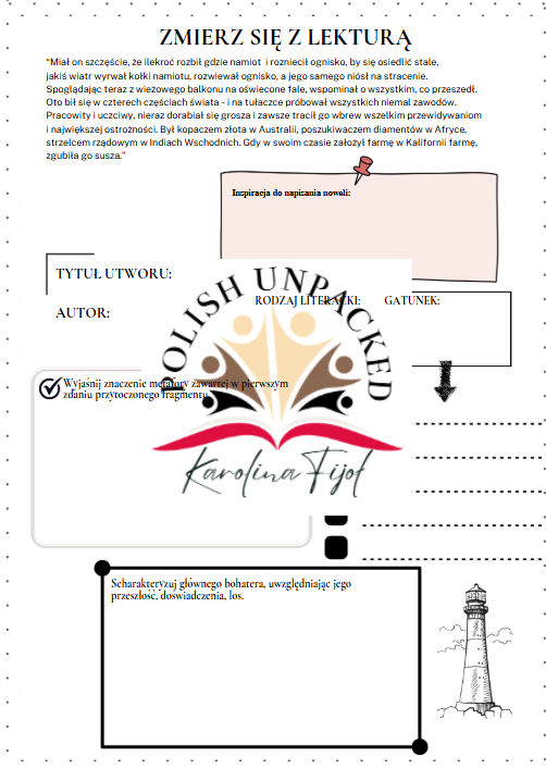 Zestaw 11 kart pracy Zmierz się z lekturą egzamin ósmoklasisty język polski • Złoty nauczyciel