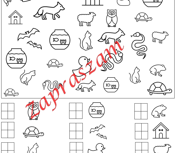 Znajdź i policz przedmioty w ramce. Odpowiedzi zapisz w wyznaczonym miejscu. Zestaw zawiera kartę pracy i rozwiązanie.