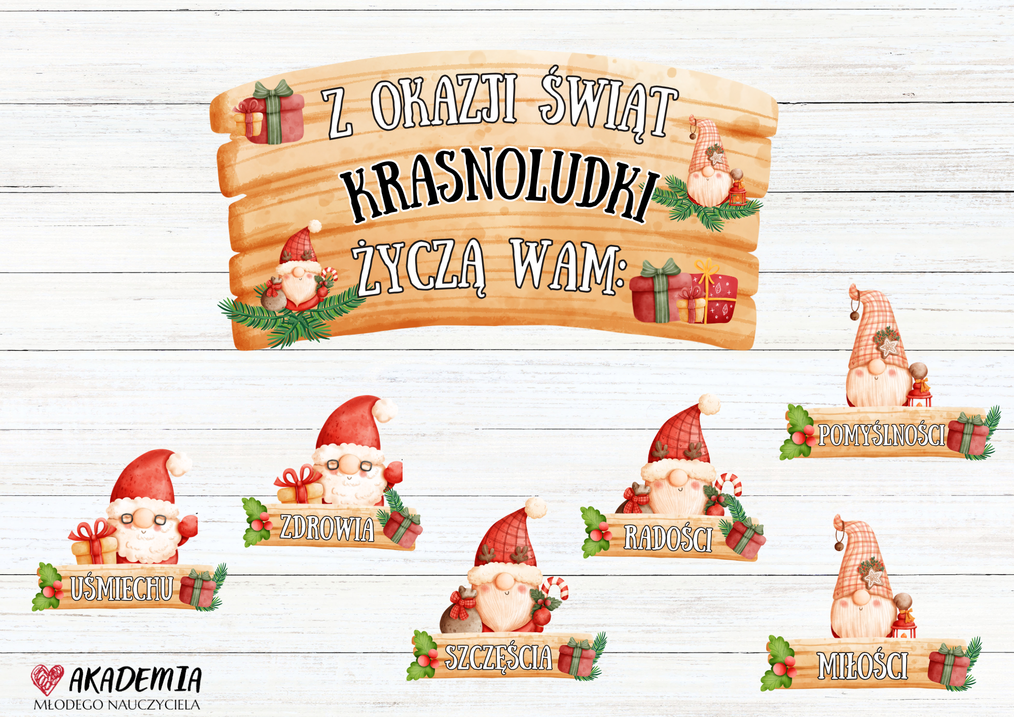 - około 30 stron z życzeniami świątecznymi, w formacie PDF i jpg, w dwóch rozmiarach - około A4 i około A5, żabki w trzech rodzajach: z sercami, z tabliczkami i z drewienkami.